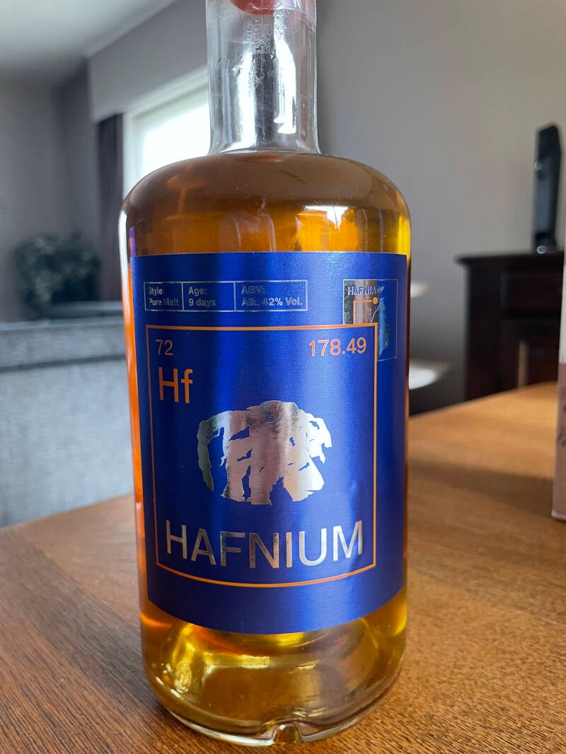 Hafnium, een 9 dagen oude single malt distillaat.